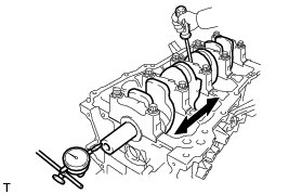 (a) Using a dial indicator, measure the thrust clearance while prying the crankshaft back and forth with a screwdriver.