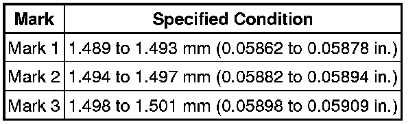 If replacing a bearing, replace it with one that has the same number as its respective connecting rod cap. Each bearing standard thickness is indicated by a 1, 2, or 3 mark on its surface.
