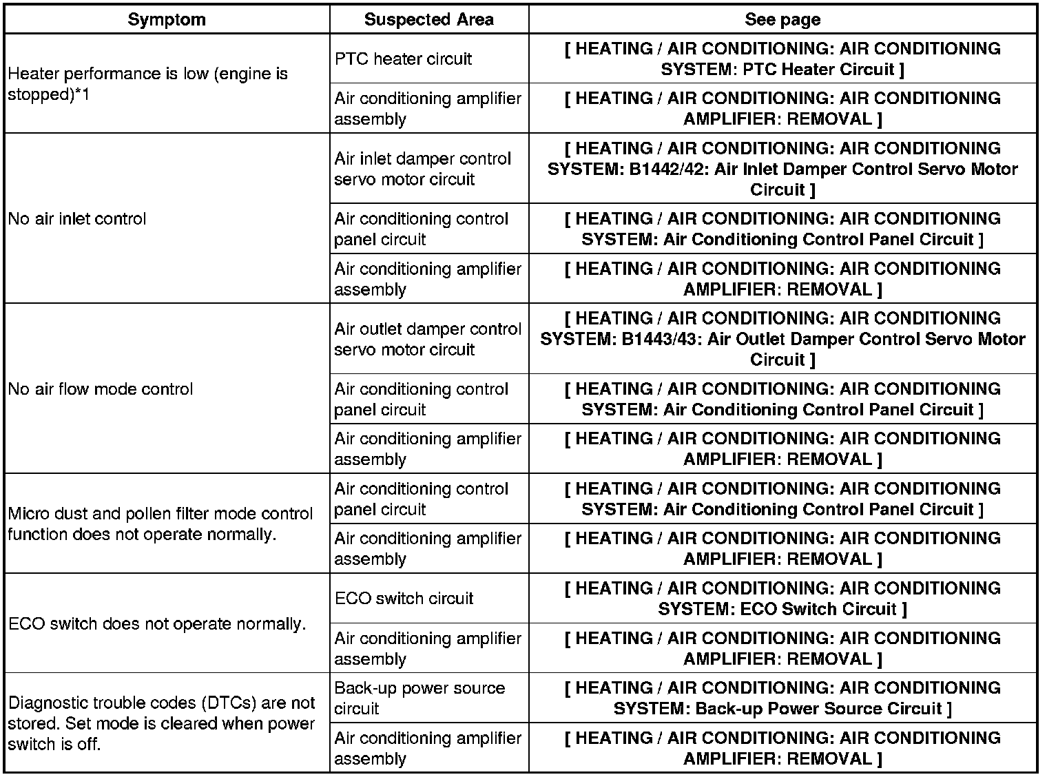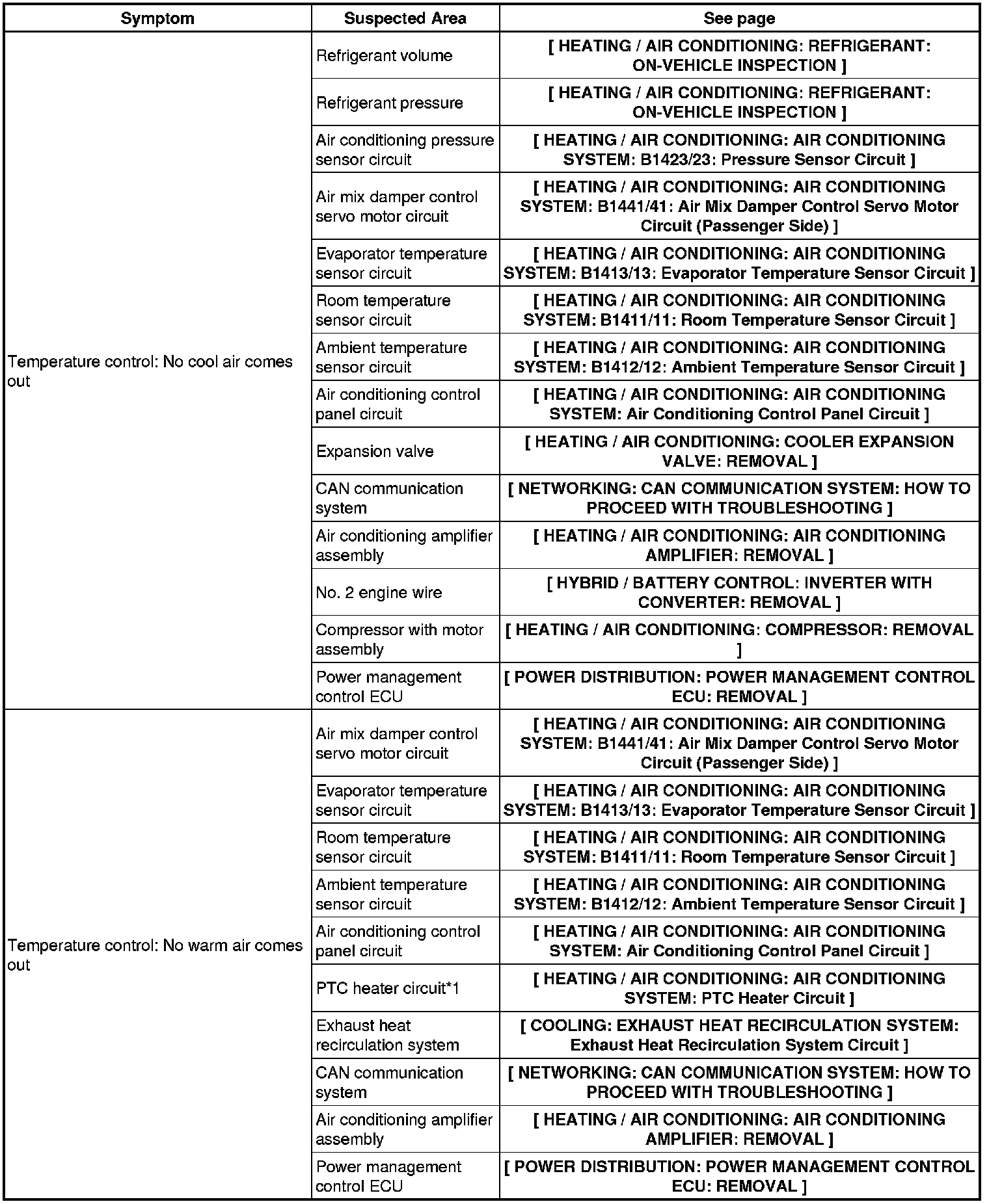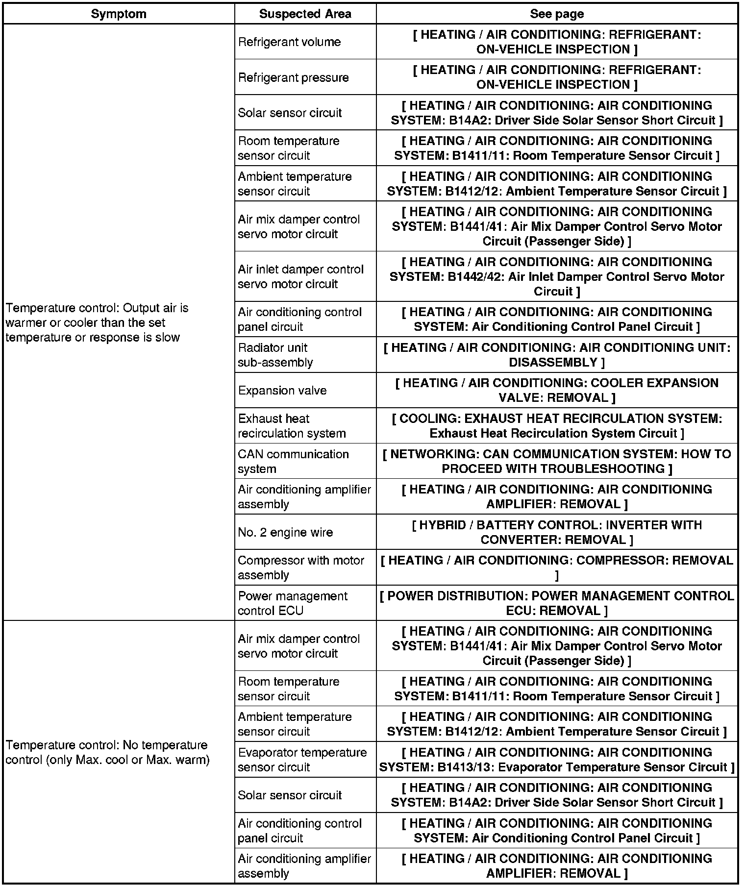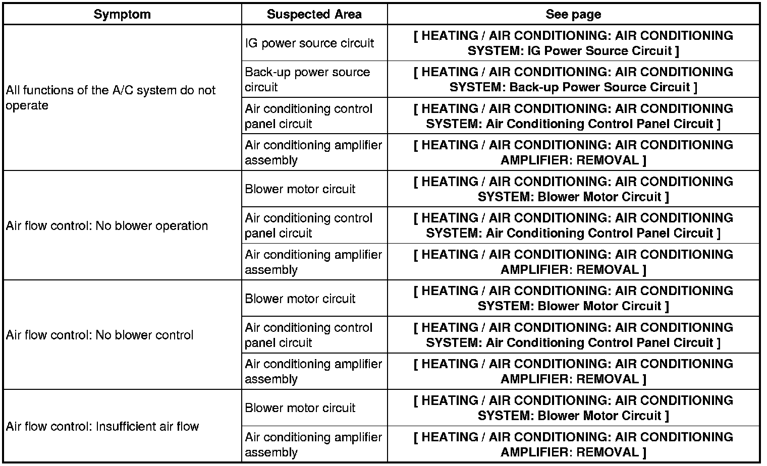 HEATING / AIR CONDITIONING: AIR CONDITIONING SYSTEM: PROBLEM SYMPTOMS TABLE