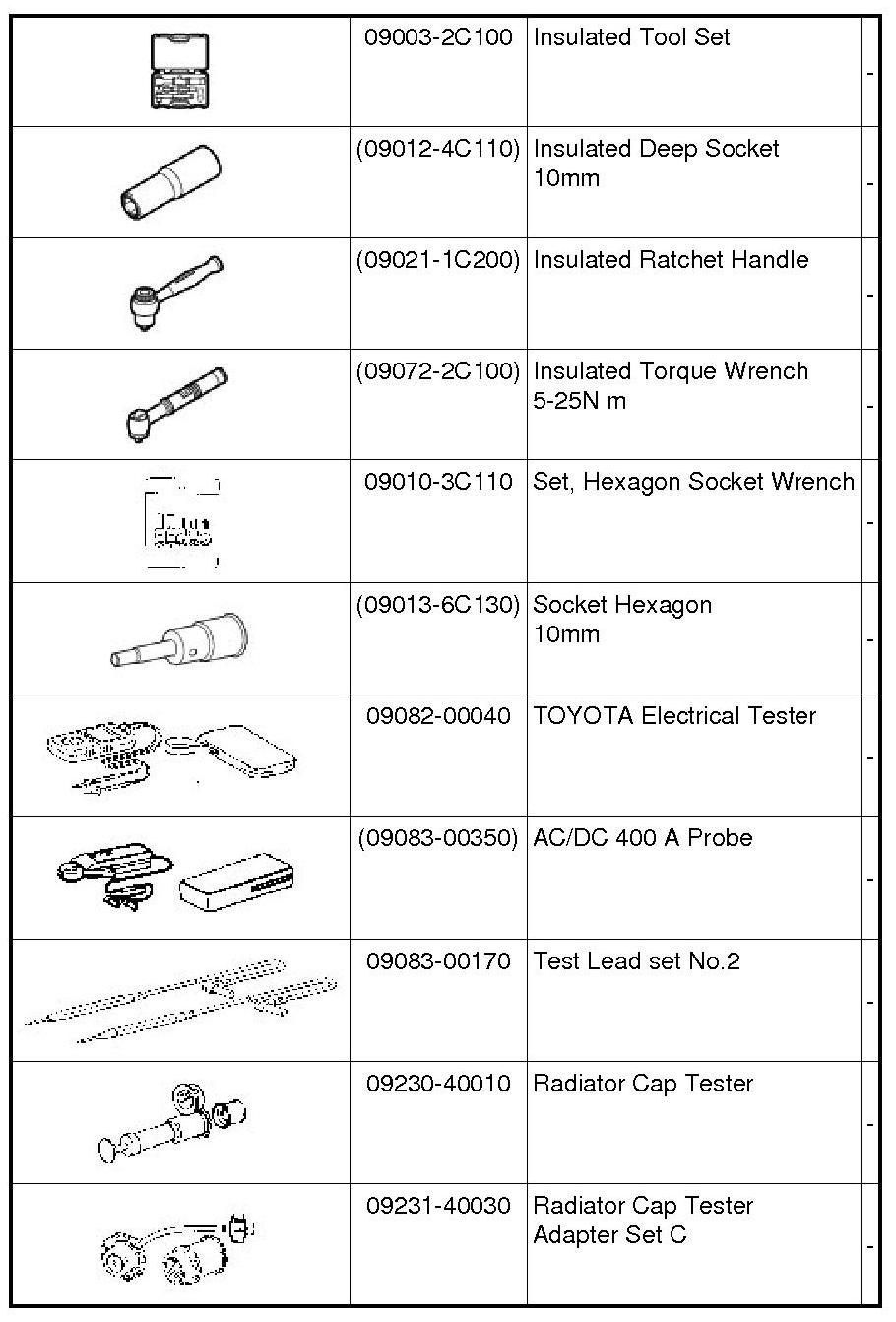 PREPARATION: HYBRID / BATTERY CONTROL: RECOMMENDED TOOLS