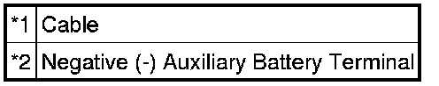 * After turning the power switch off, waiting time may be required before disconnecting the cable from the negative (-) auxiliary battery terminal. Therefore, make sure to read the disconnecting the cable from the negative (-) auxiliary battery terminal notices before proceeding with work Service Precautions.