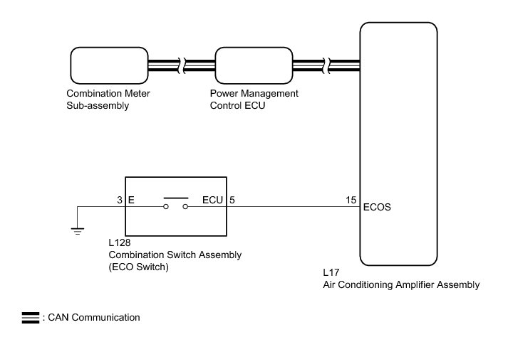 When selecting ECO mode, the switch operation signal is sent to the air conditioning amplifier assembly. Following this, ECO mode control is activated for the heater and air conditioning system.