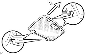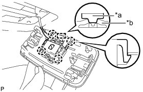 (a) Align the switch parts shown in the illustration and engage the 4 claws to install the room light switch base to the No. 1 room light housing.