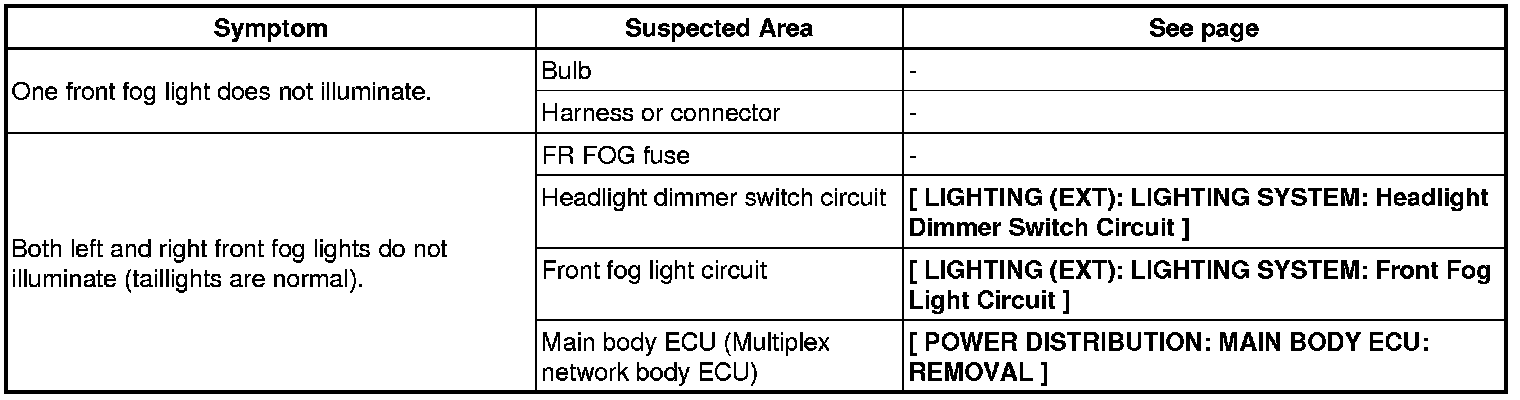 LIGHTING (EXT): LIGHTING SYSTEM: PROBLEM SYMPTOMS TABLE
