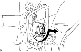 (a) Turn the rear combination light socket and wire sub-assembly with the rear turn signal light bulb in the direction indicated by the arrow shown in the illustration, and disconnect them as a unit.