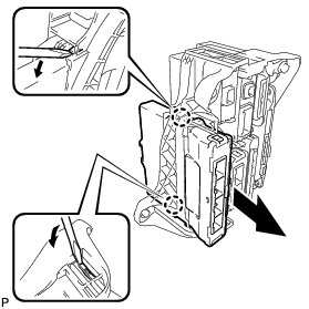(a) Using a screwdriver, disengage the 2 claws and remove the power management control ECU as shown in the illustration.