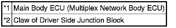 (d) Raise the main body ECU (multiplex network body ECU) as shown by the arrow (1), and then pull it out as shown by the arrow (2) in the illustration.