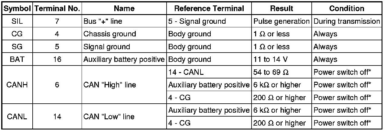 *: Before measuring the resistance, leave the vehicle as is for at least 1 minute and do not operate the power switch, any other switches or the doors.