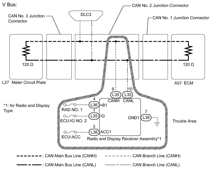 NG -- REPAIR OR REPLACE CAN BRANCH LINE OR CONNECTOR (RADIO AND DISPLAY RECEIVER ASSEMBLY)