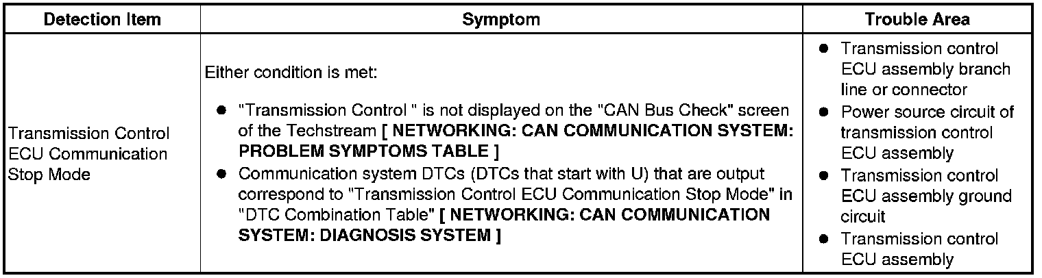 NETWORKING: CAN COMMUNICATION SYSTEM: Transmission Control ECU Communication Stop Mode