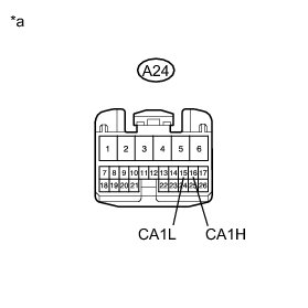 * Before measuring the resistance of the CAN bus, turn the power switch off and leave the vehicle for 1 minute or more without operating the key, switches or opening or closing the doors. After that, disconnect the cable from the negative (-) auxiliary battery terminal and leave the vehicle for 1 minute or more before measuring the resistance.
