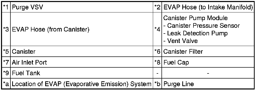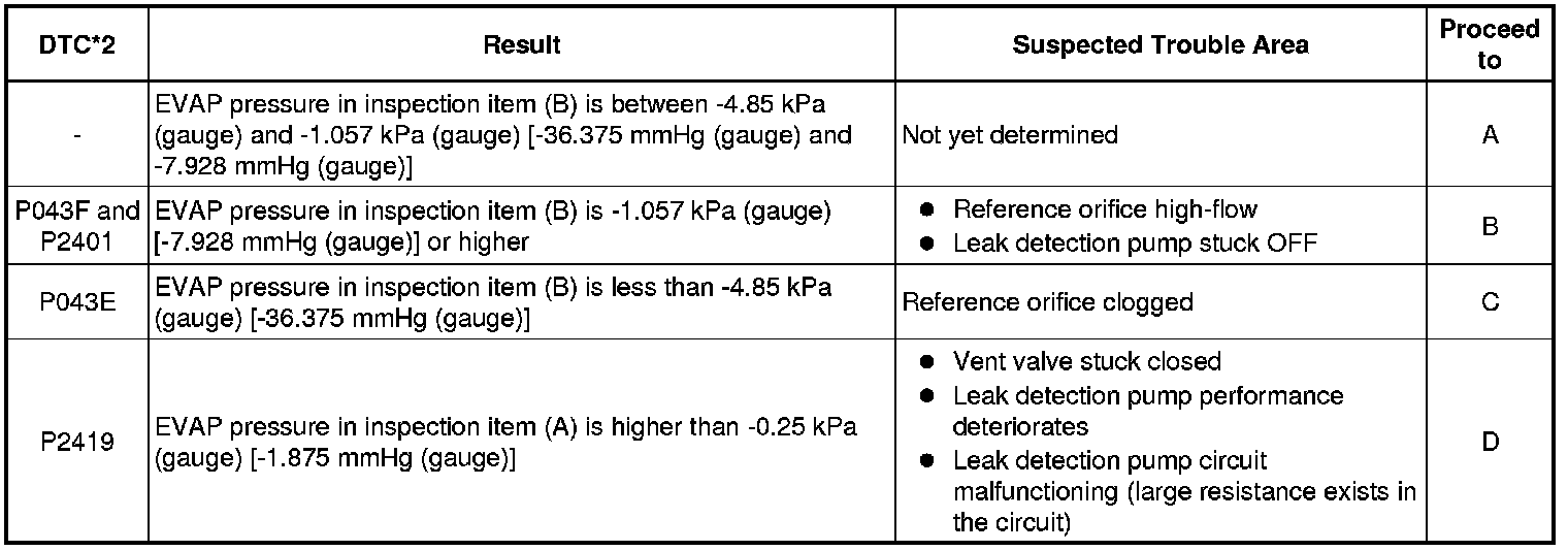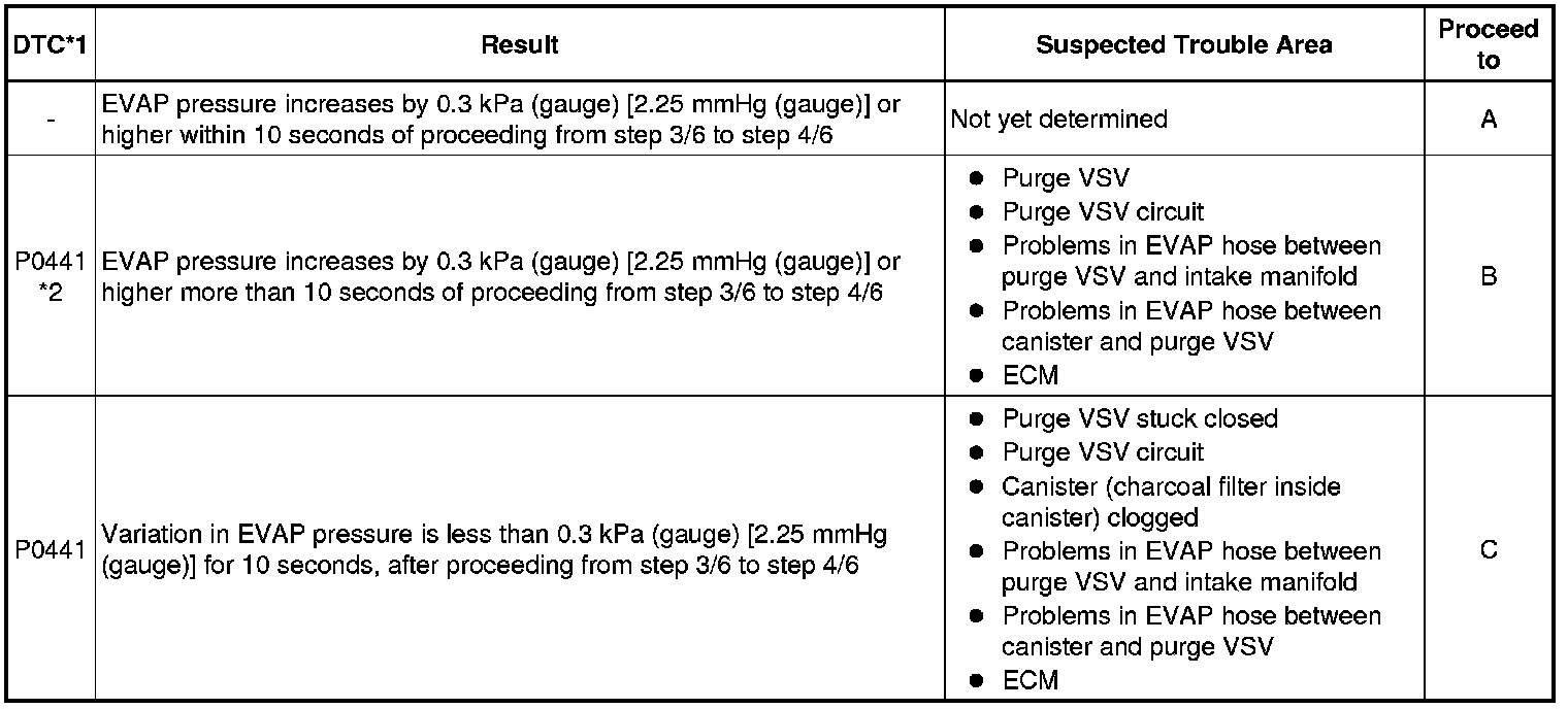 * *2: This result suggests that due to purge line blockage or purge VSV malfunction, the DTC was stored by the purge flow monitor while the engine was running, or that key-off monitor test result were nearly borderline values.