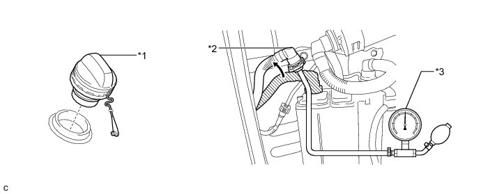 Perform this inspection with the fuel tank less than 90% full. When the fuel tank is full, the fuel fill check valve closes and the pressure is released through the 2 mm orifice. As a result, when the fuel tank cap is removed, the pressure does not decrease smoothly.