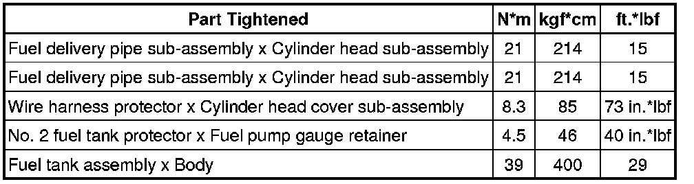 SPECIFICATIONS: 2ZR-FXE FUEL: TORQUE SPECIFICATIONS