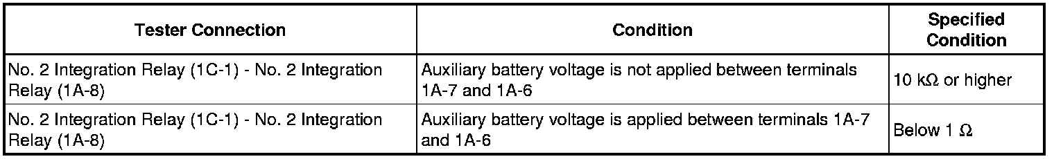 If the resistance is not as specified, replace the No. 2 integration relay.
