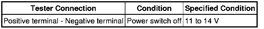 (b) Using a voltmeter, measure the auxiliary battery voltage according to the value(s) in the table below.