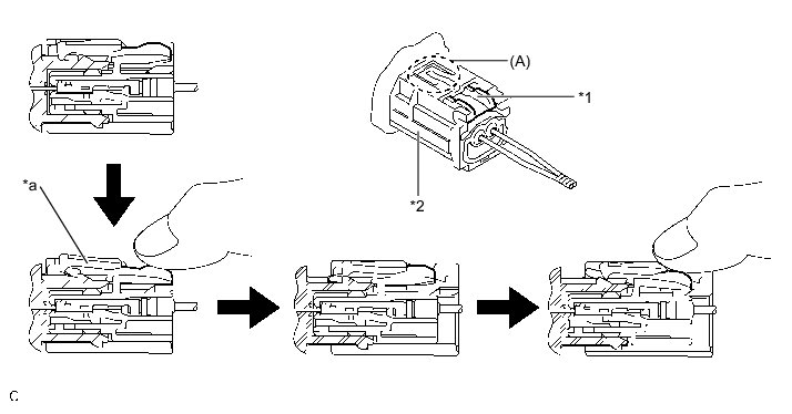 (e) After disconnecting the connector, check that the position of the white housing lock is correct as shown in the illustration.