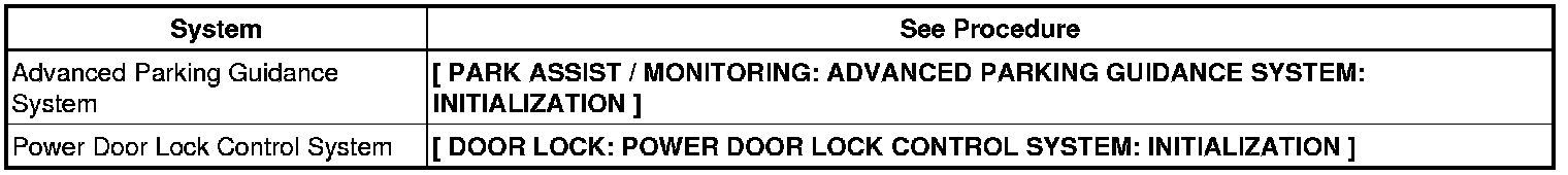 When disconnecting the cable from the negative (-) auxiliary battery terminal, initialize the following system(s) after the cable is reconnected: