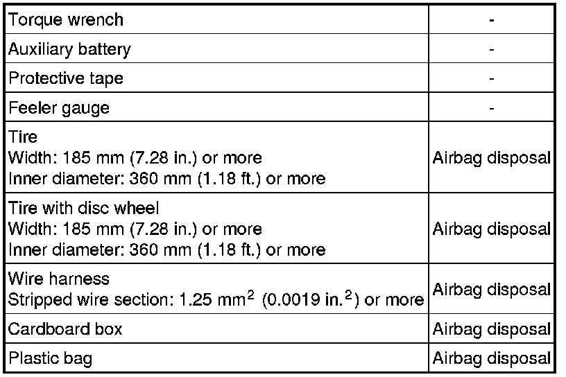 PREPARATION: SUPPLEMENTAL RESTRAINT SYSTEMS: EQUIPMENT