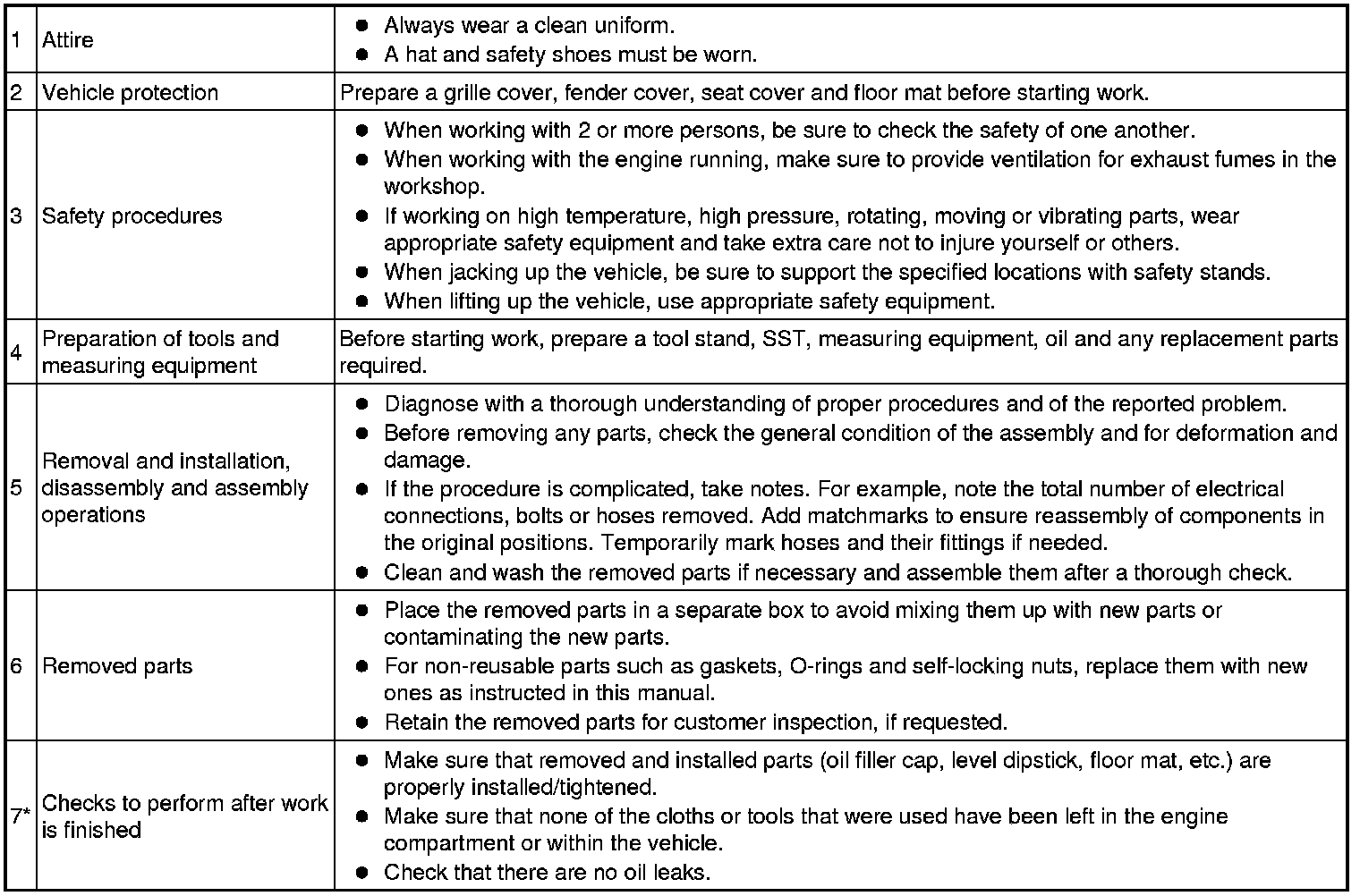 3. PRECAUTIONS TO BE OBSERVED WHEN INSPECTING OR SERVICING ENGINE COMPARTMENT