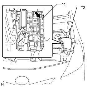 * After removing the HV battery, keep it away from water. Exposure to water may cause the HV battery to produce heat, resulting in a fire.