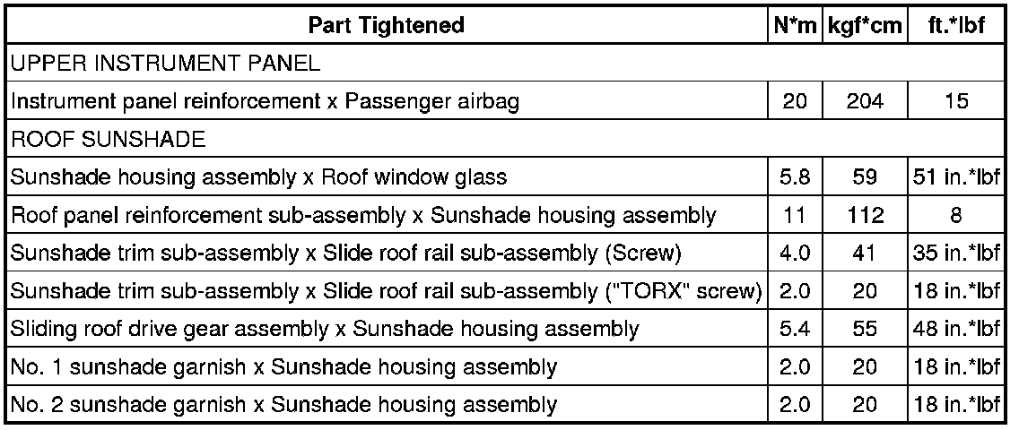 SPECIFICATIONS: INTERIOR PANELS / TRIM: TORQUE SPECIFICATIONS