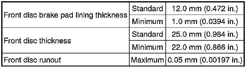 SPECIFICATIONS: BRAKE (FRONT): SERVICE DATA