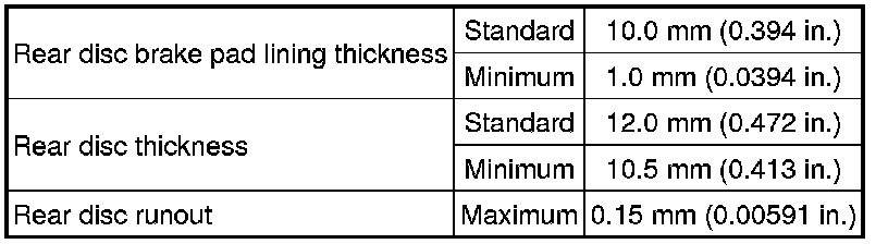 SPECIFICATIONS: BRAKE (REAR): SERVICE DATA