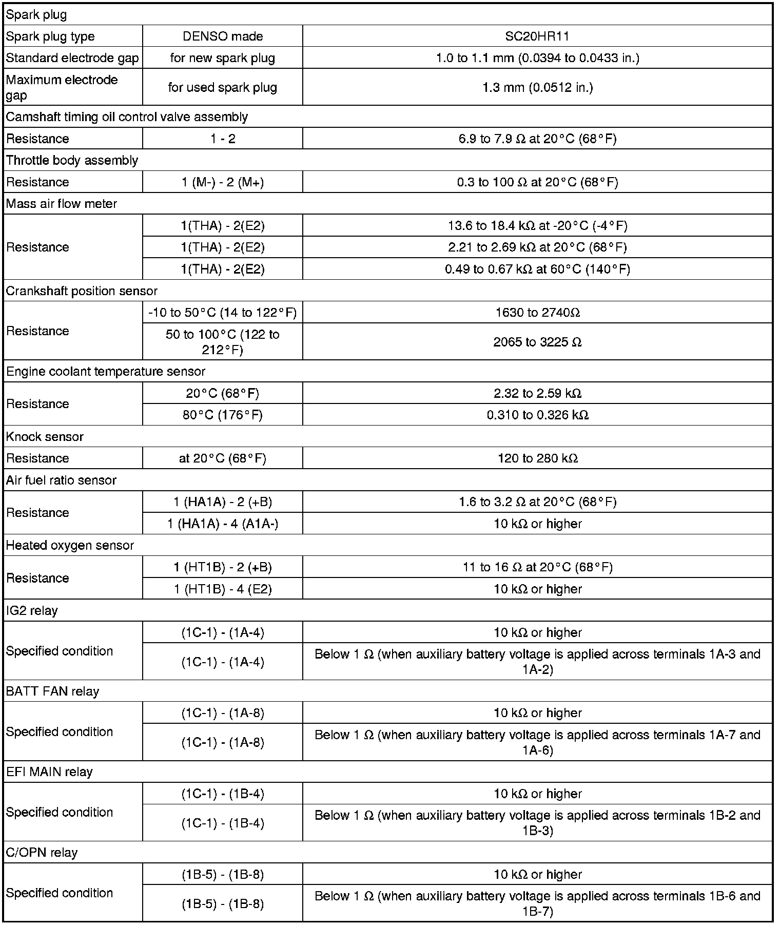 SPECIFICATIONS: 2ZR-FXE ENGINE CONTROL: SERVICE DATA