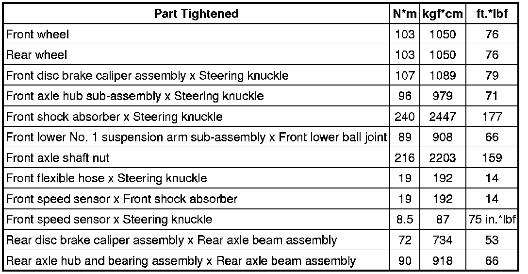 SPECIFICATIONS: AXLE AND DIFFERENTIAL: TORQUE SPECIFICATIONS