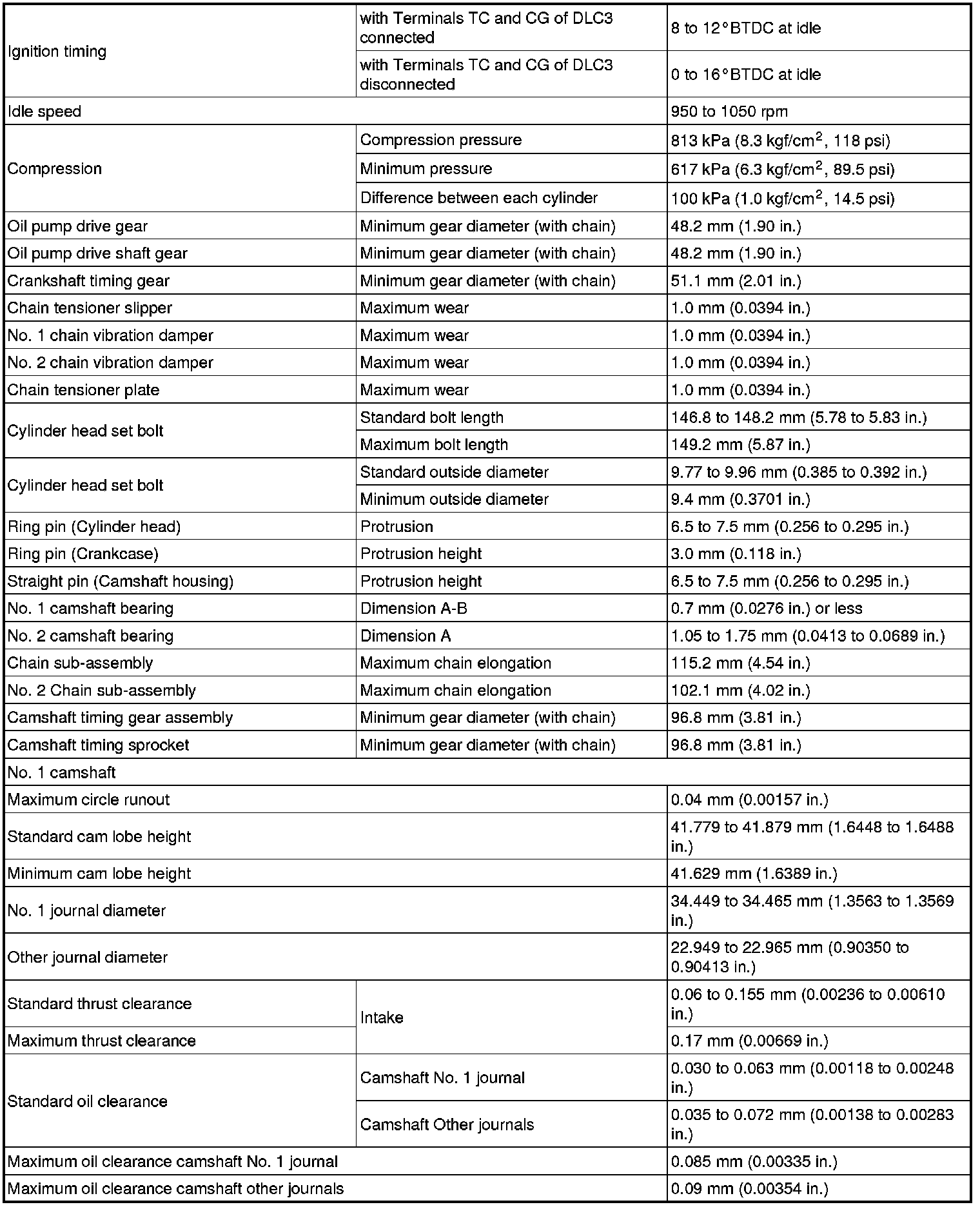 SPECIFICATIONS: 2ZR-FXE ENGINE MECHANICAL: SERVICE DATA