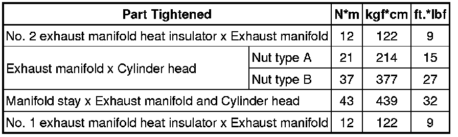 SPECIFICATIONS: 2ZR-FXE INTAKE / EXHAUST: TORQUE SPECIFICATIONS