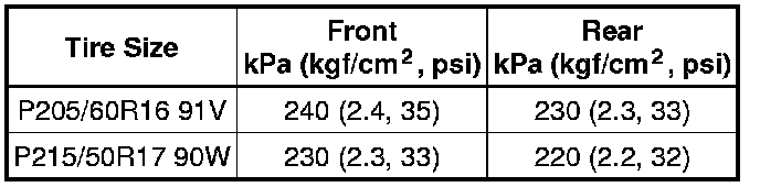 Cold Tire Inflation Pressure: