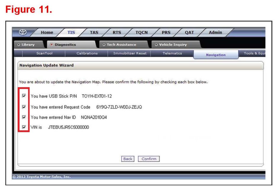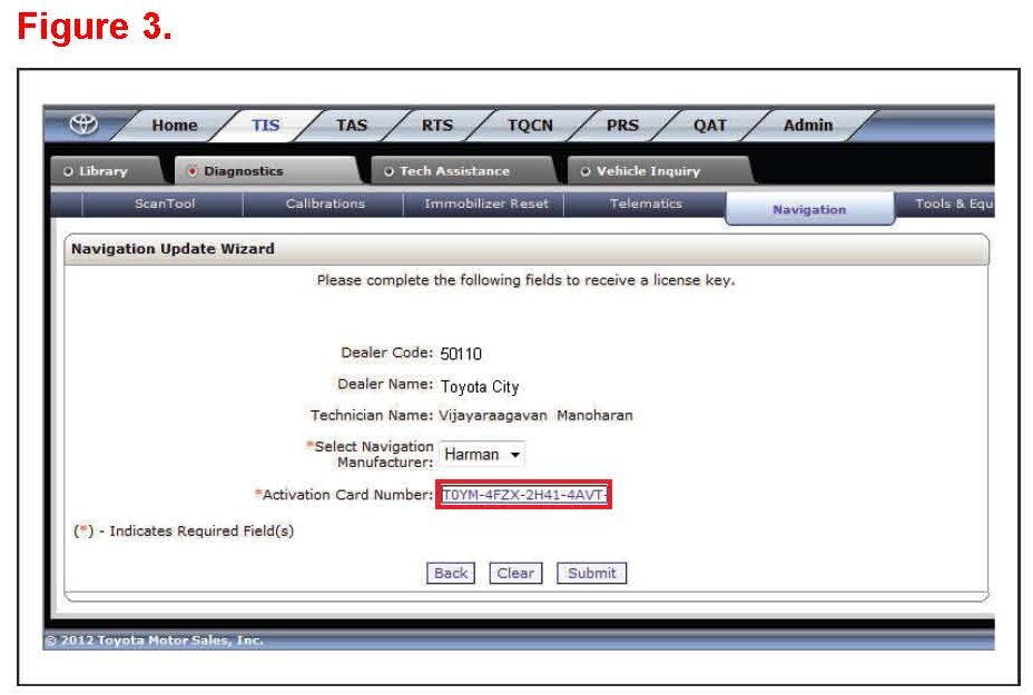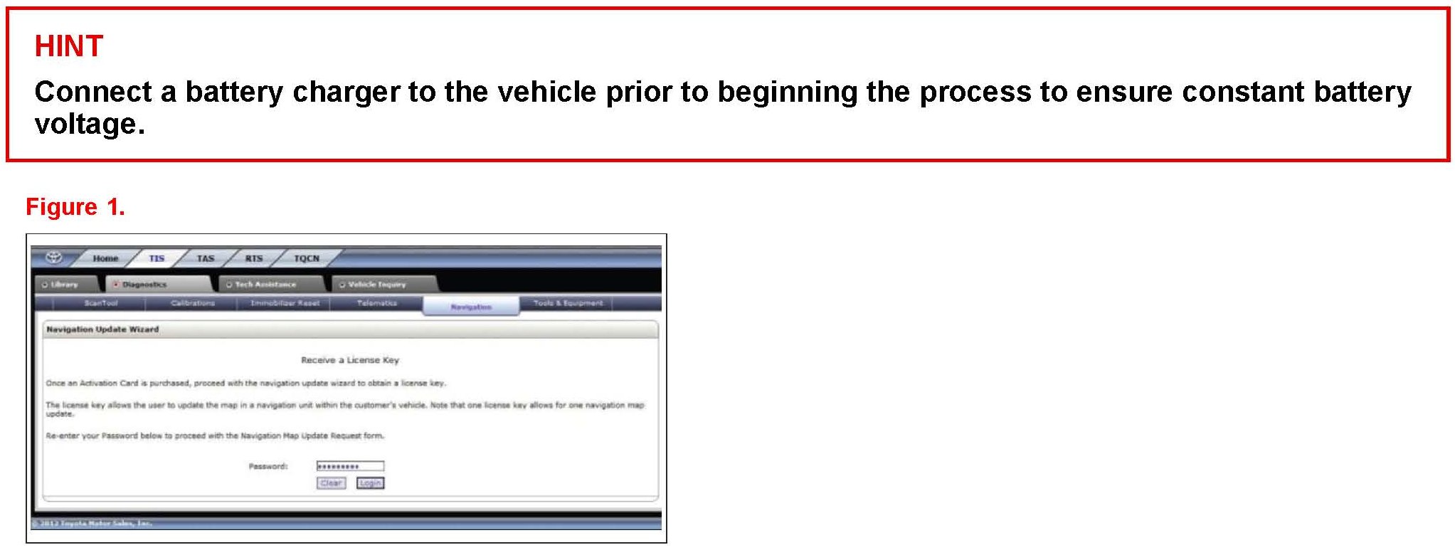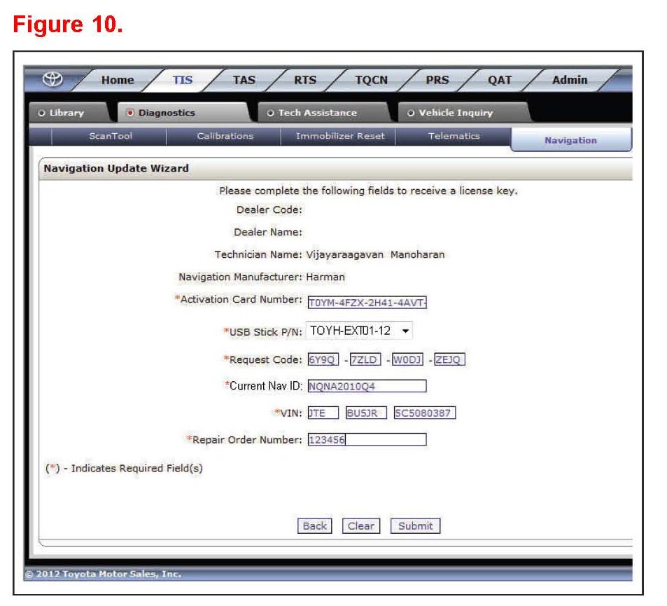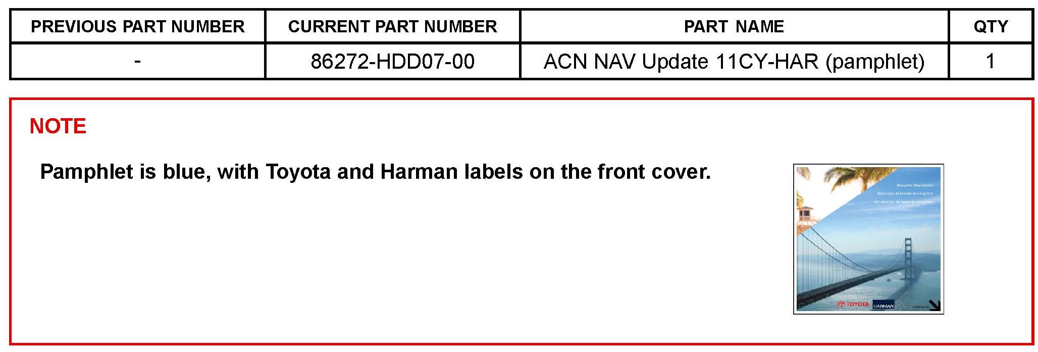 Toyota models equipped with the Display Audio HDD Navigation System require a Special Service Tool (SST) USB drive to update the map, points of interest, Gracenote(R), and system software. The SST is used with all vehicles to deliver the update, however a unique Activation Number is required for each vehicle. Activation Numbers are provided in an Activation Card Number (ACN) pamphlet available through the normal parts ordering system. Use the process described in this bulletin to perform the update.