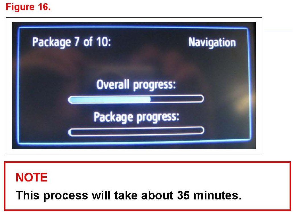 22. Navigation Map Update will begin automatically. The installation will update 10 packages (includes system software and Gracenote(R) updates) during this process and will automatically advance through each update.