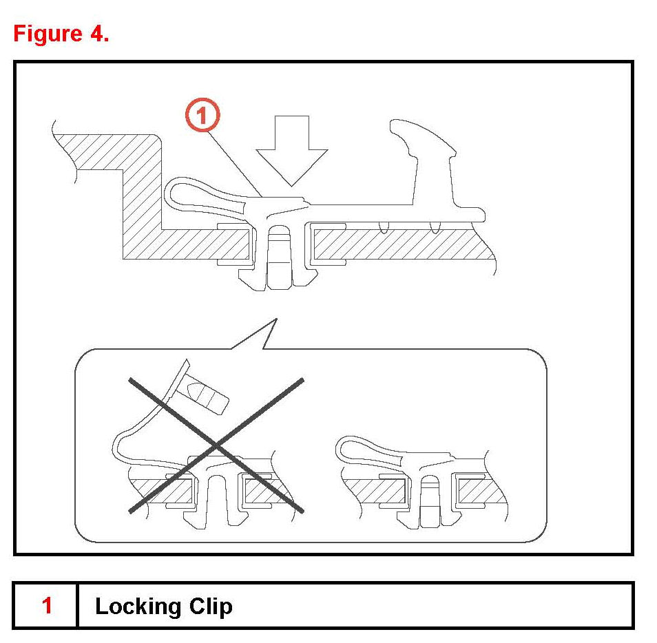 3. To lock the retention clip in place insert the locking clip of the retention clip into the designated hole.