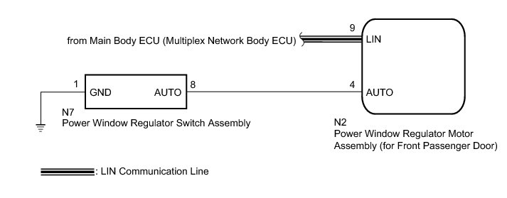 * The power window control system uses a LIN communication system. Inspect the communication function by following How to Proceed with Troubleshooting How To Proceed With Troubleshooting. Troubleshoot the power window control system after confirming that the communication system is functioning properly.