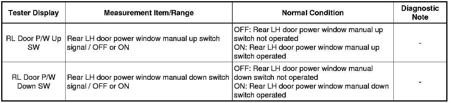 - Rear Power Window LH does not Operate with Rear Power Window Switch LH