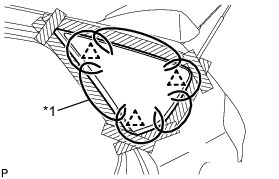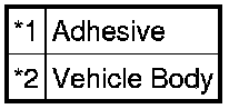 (1) Using a knife, cut away excess adhesive on the contact surfaces of the vehicle body as shown in the illustration.
