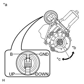 * If the result is not as specified, replace the power window regulator motor assembly LH.