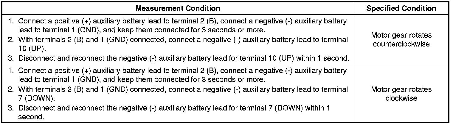 (b) Connect a ground lead to connector terminals 1 (GND) and 7 (DOWN) or 10 (UP).
