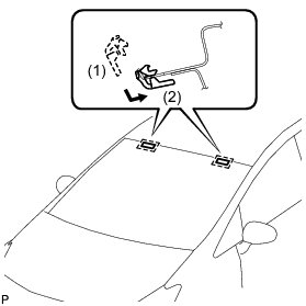 (b) Install 2 new No. 2 windshield glass stoppers onto the windshield glass, as shown in the illustration.