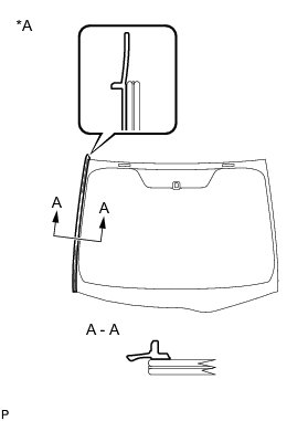 (b) Install the windshield outside moulding LH onto the windshield glass, as shown in the illustration.