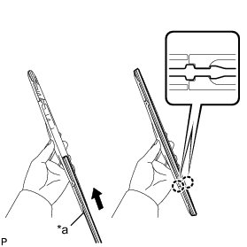 (a) Disengage the 2 claws and remove the wiper rubber with the wiper rubber backing plates from the front wiper blade as shown in the illustration.
