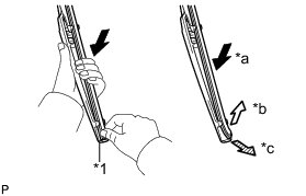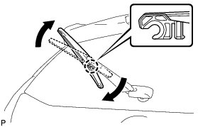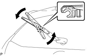 (a) Raise the wiper blade to the position where the claw detaches with a click sound as shown in the illustration and then remove the rear wiper blade assembly from the rear wiper arm.