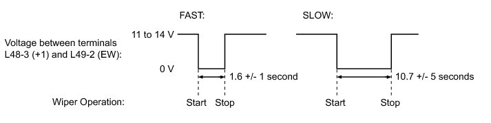 (3) Operate the intermittent wiper and check the voltage between terminals L48-3 (+1) and L49-2 (EW).