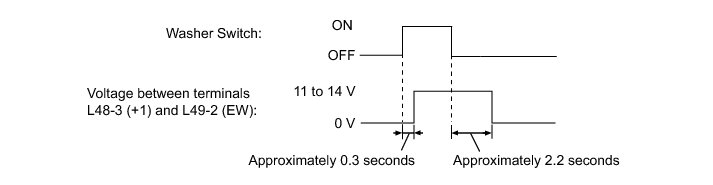 (3) Turn the washer switch on and off, and check the voltage between terminals L48-3 (+1) and L49-2 (EW).