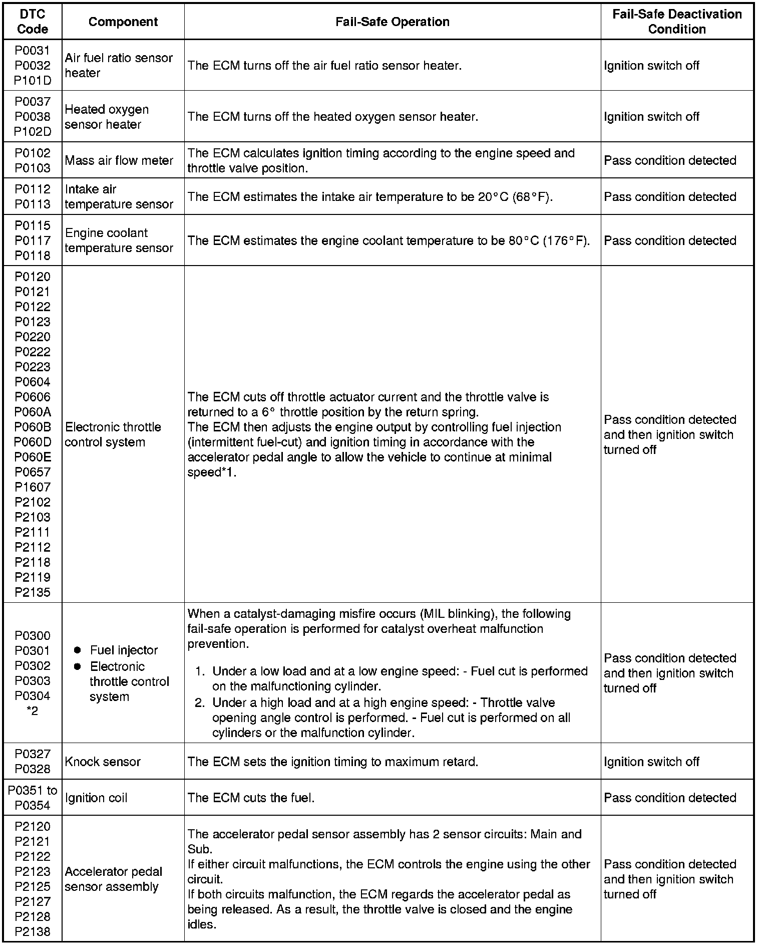 * *2: Misfire-related fail-safe operations occur when catalyst overheat malfunctions occur.