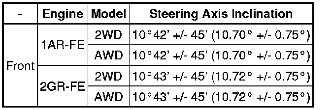 Steering Axis Inclination (Unloaded Vehicle)