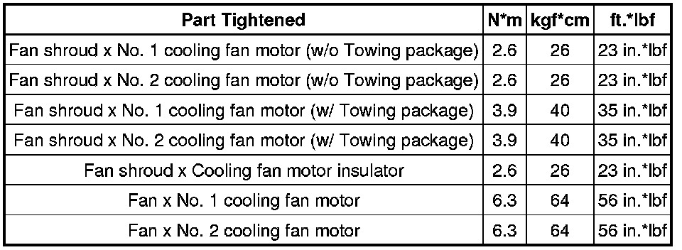 SPECIFICATIONS: 1AR-FE COOLING: TORQUE SPECIFICATIONS